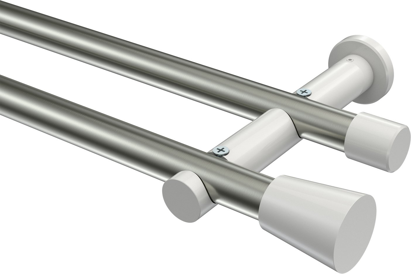 Gardinenstangen aus Metall in 20 mm Ø, 2-läufig, Modell PLATON - Sitra Edelstahl-Optik / Weiß (ohne Ringe)