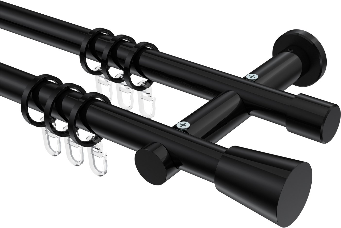 Gardinenstangen aus Metall in 20 mm Ø, 2-läufig, Modell PLATON - Sitra Schwarz