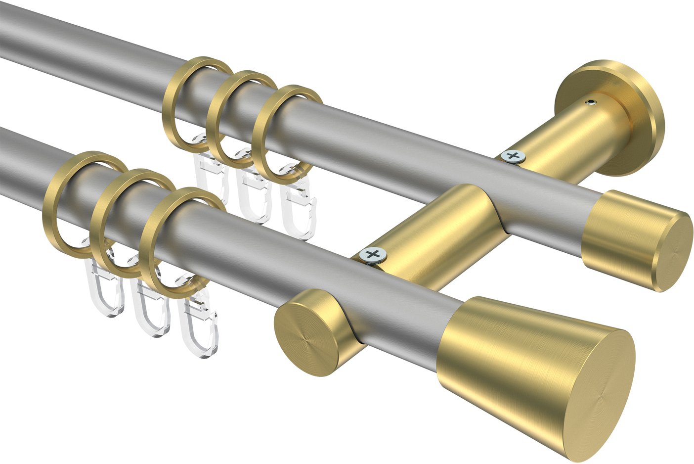 Informationen zu Gardinenstange Metall 20 mm Ø 2-läufig PLATON - Sitra Silbergrau / Messing-Optik: