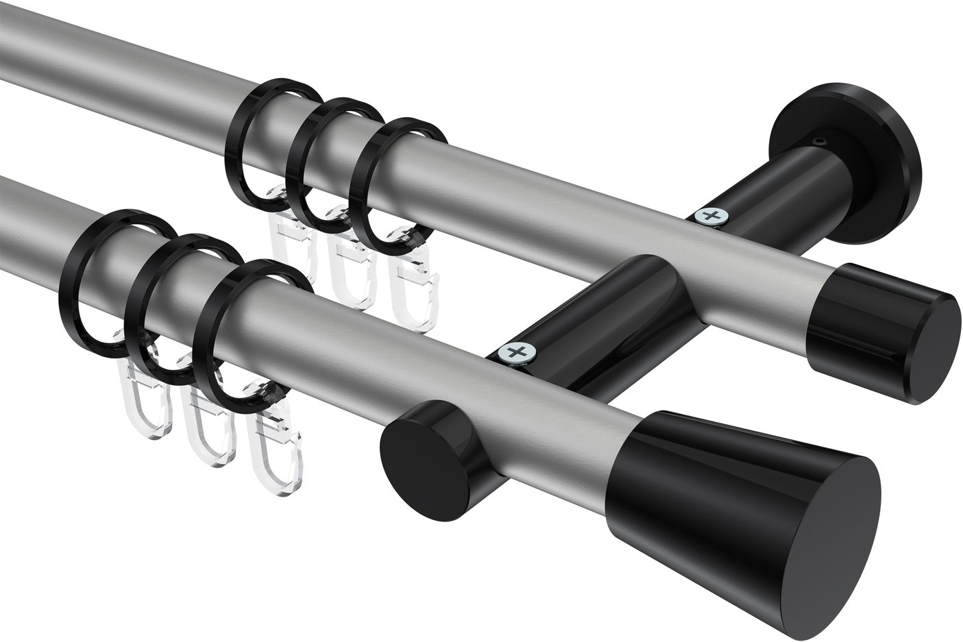 Gardinenstangen aus Metall in 20 mm Ø, 2-läufig, Modell PLATON - Sitra Silbergrau / Schwarz