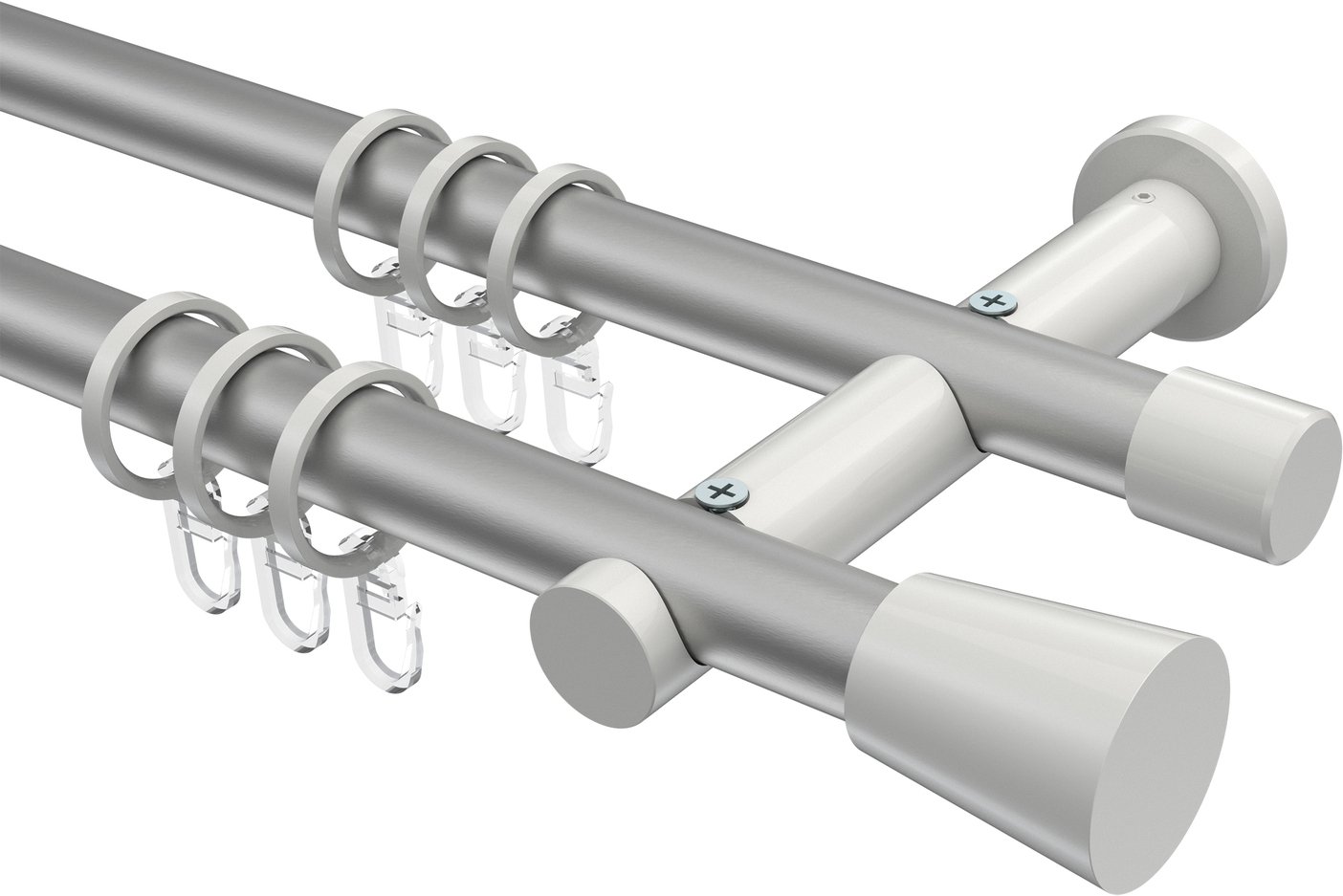 Gardinenstangen aus Metall in 20 mm Ø, 2-läufig, Modell PLATON - Sitra Silbergrau / Weiß