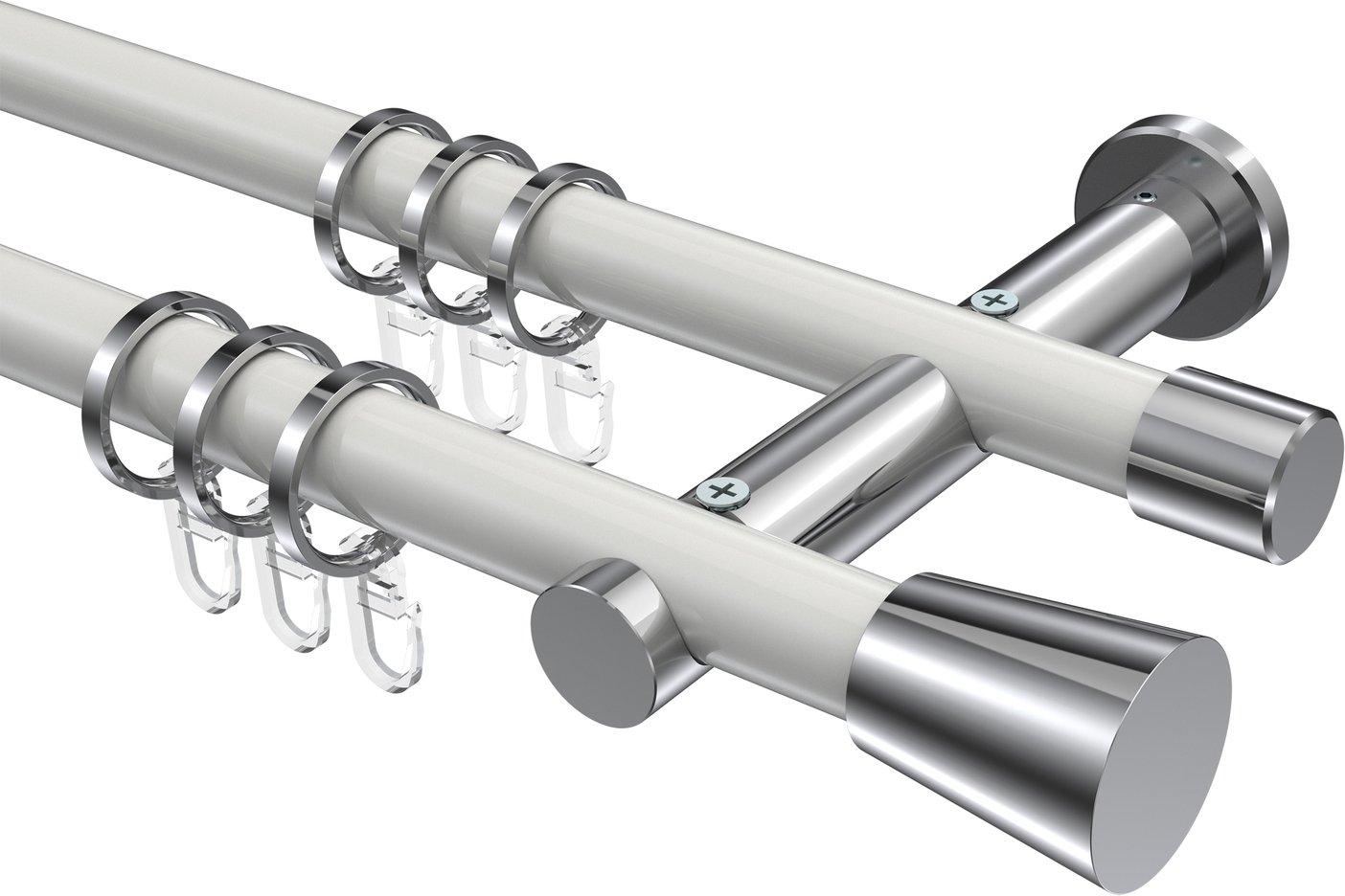Gardinenstangen aus Metall in 20 mm Ø, 2-läufig, Modell PLATON - Sitra Weiß / Chrom