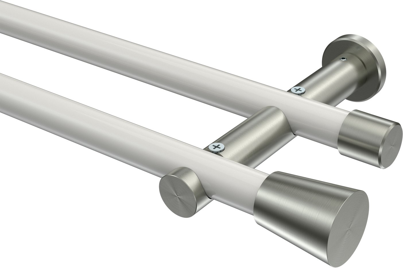 Informationen zu Gardinenstange Metall 20 mm Ø 2-läufig PLATON - Sitra Weiß / Edelstahl-Optik (ohne Ringe):