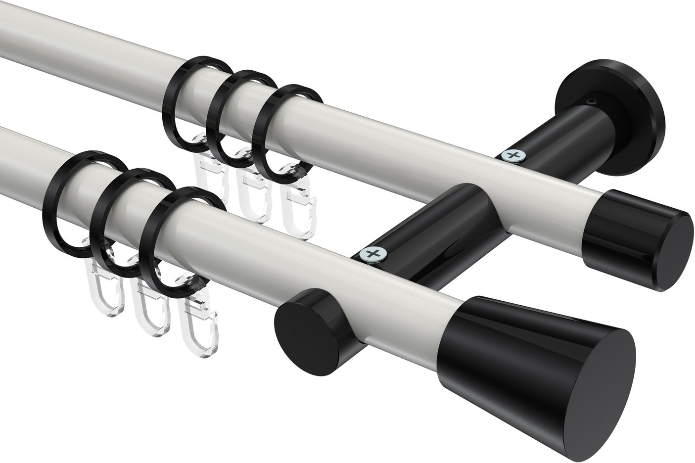 Gardinenstangen aus Metall in 20 mm Ø, 2-läufig, Modell PLATON - Sitra Weiß / Schwarz