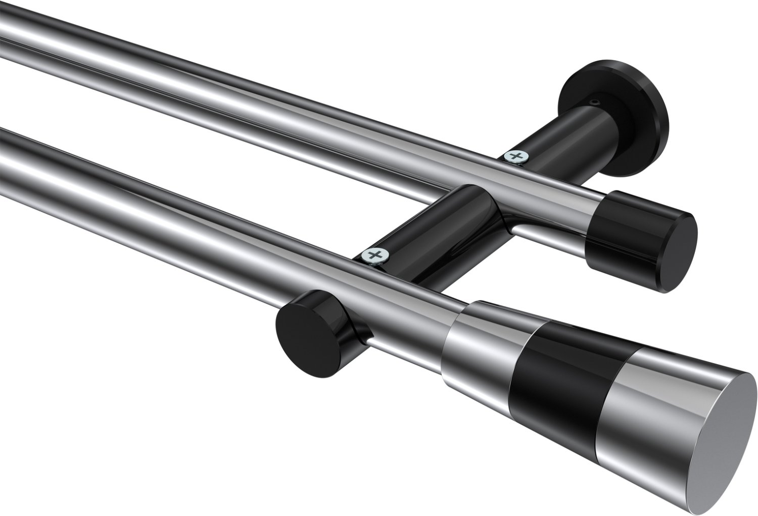 Informationen zu Gardinenstange Metall 20 mm Ø 2-läufig PLATON - Tanara Chrom / Schwarz (ohne Ringe):