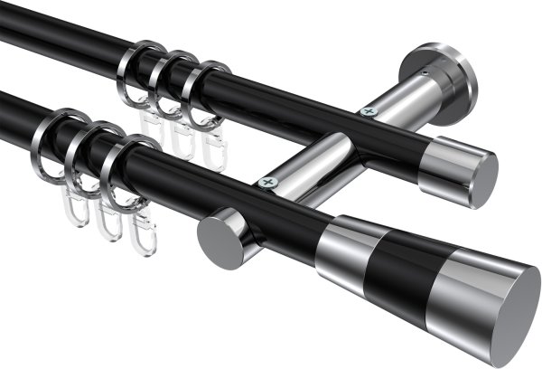 Gardinenstangen aus Metall in 20 mm Ø, 2-läufig, Modell PLATON - Tanara Schwarz / Chrom