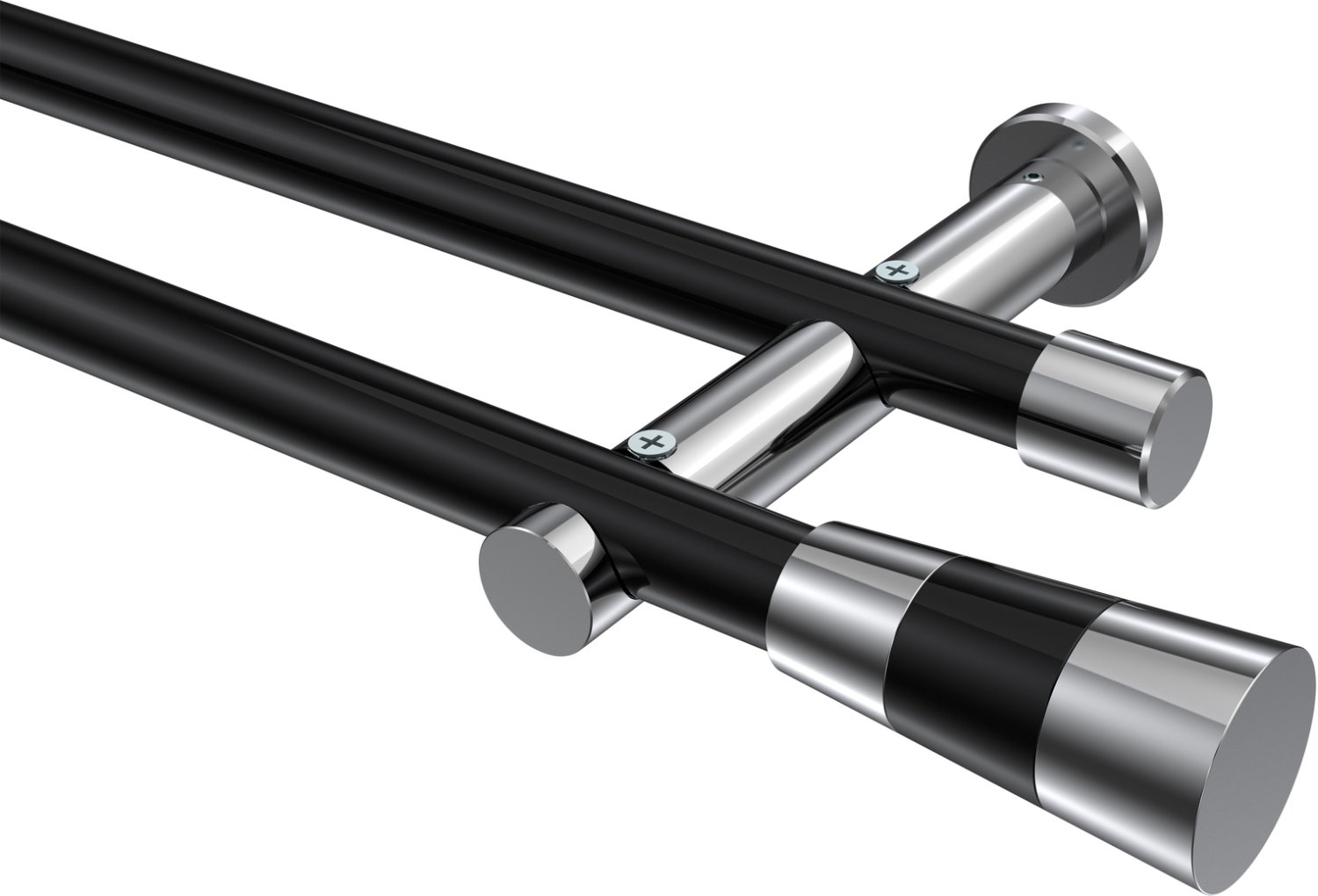 Gardinenstangen aus Metall in 20 mm Ø, 2-läufig, Modell PLATON - Tanara Schwarz / Chrom (ohne Ringe)