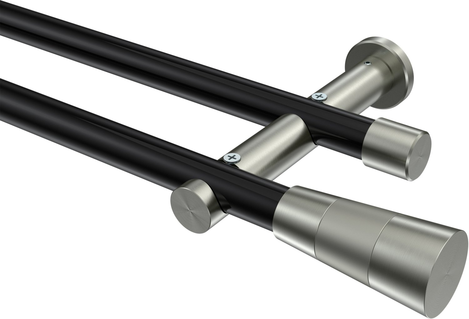 Gardinenstangen aus Metall in 20 mm Ø, 2-läufig, Modell PLATON - Tanara Schwarz / Edelstahl-Optik (ohne Ringe)