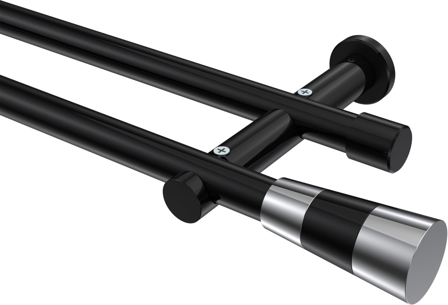 Gardinenstangen aus Metall in 20 mm Ø, 2-läufig, Modell PLATON - Tanara Schwarz (ohne Ringe)