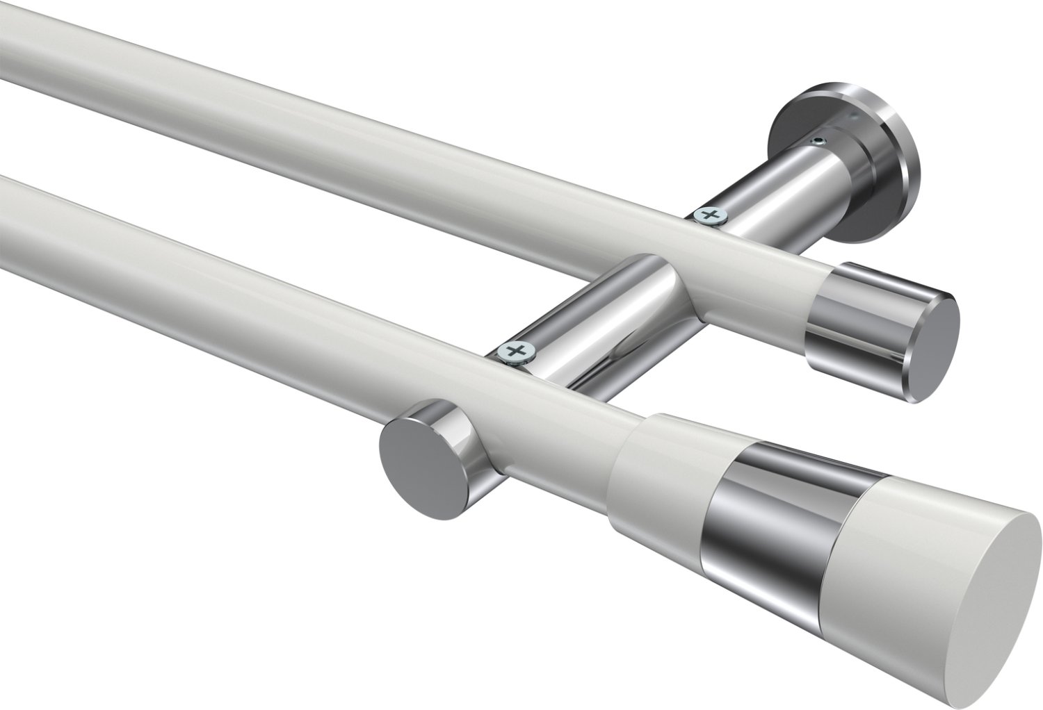 Gardinenstangen aus Metall in 20 mm Ø, 2-läufig, Modell PLATON - Tanara Weiß / Chrom (ohne Ringe)
