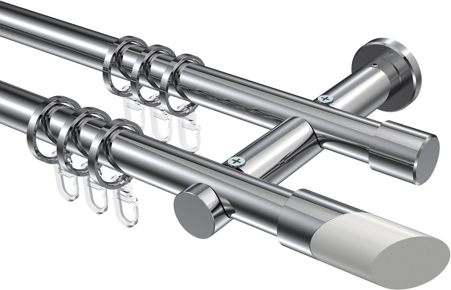 Gardinenstangen aus Metall in 20 mm Ø, 2-läufig, Modell PLATON - Verano Chrom