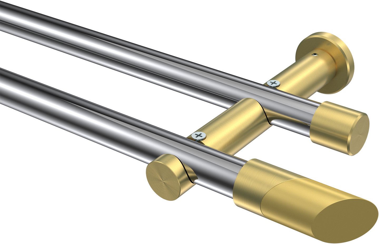 Informationen zu Gardinenstange Metall 20 mm Ø 2-läufig PLATON - Verano Chrom / Messing-Optik (ohne Ringe):