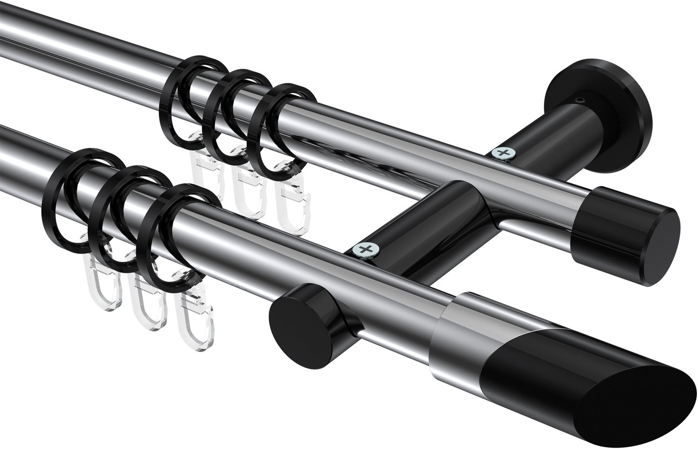 Gardinenstangen aus Metall in 20 mm Ø, 2-läufig, Modell PLATON - Verano Chrom / Schwarz