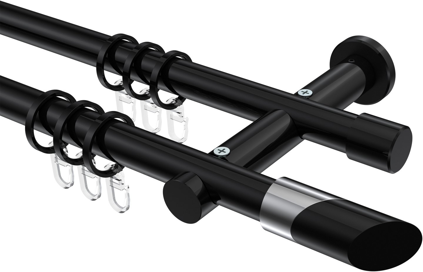 Gardinenstangen aus Metall in 20 mm Ø, 2-läufig, Modell PLATON - Verano Schwarz