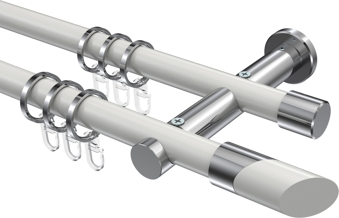 Gardinenstangen aus Metall in 20 mm Ø, 2-läufig, Modell PLATON - Verano Weiß / Chrom
