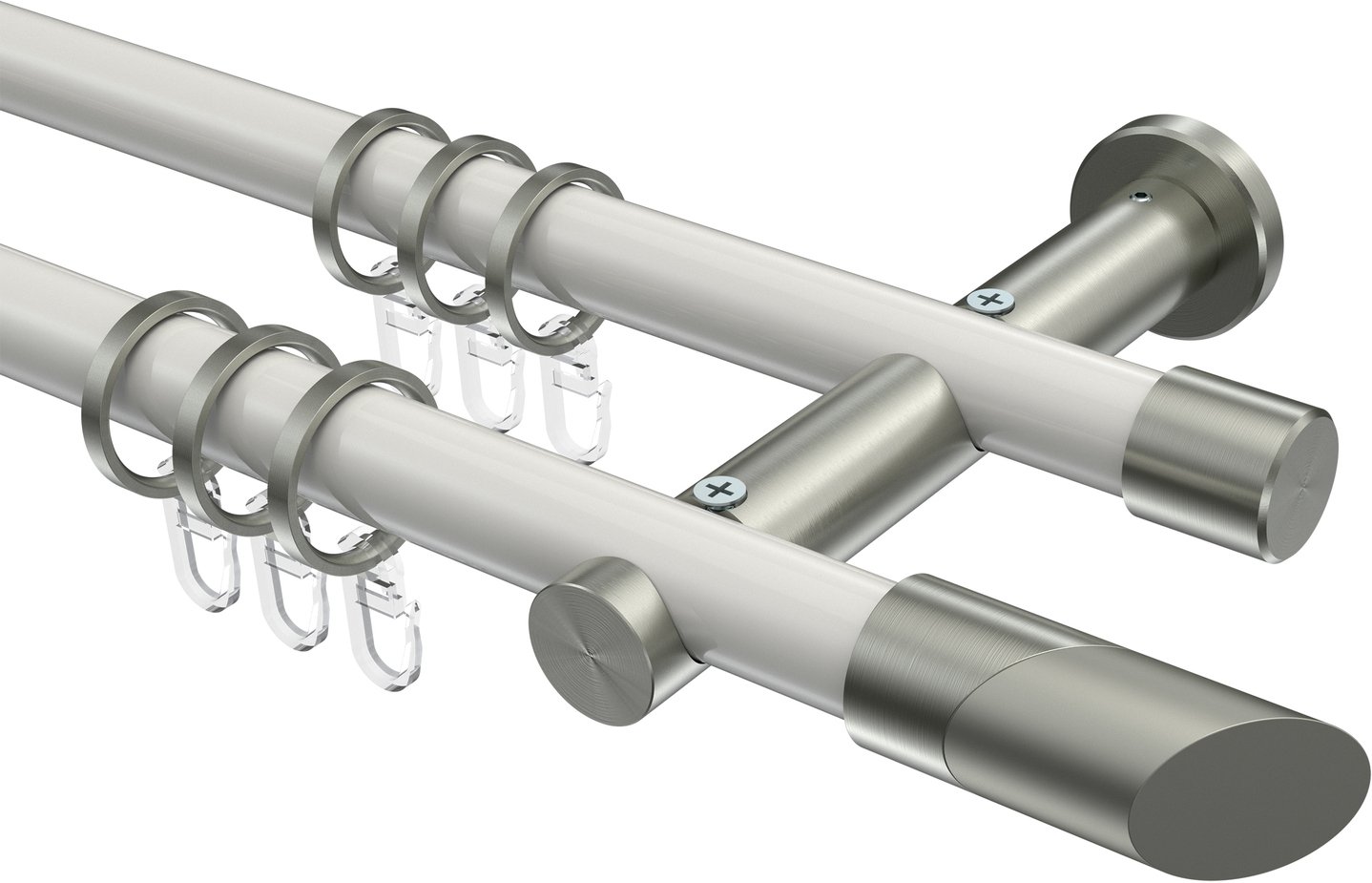 Gardinenstangen aus Metall in 20 mm Ø, 2-läufig, Modell PLATON - Verano Weiß / Edelstahl-Optik