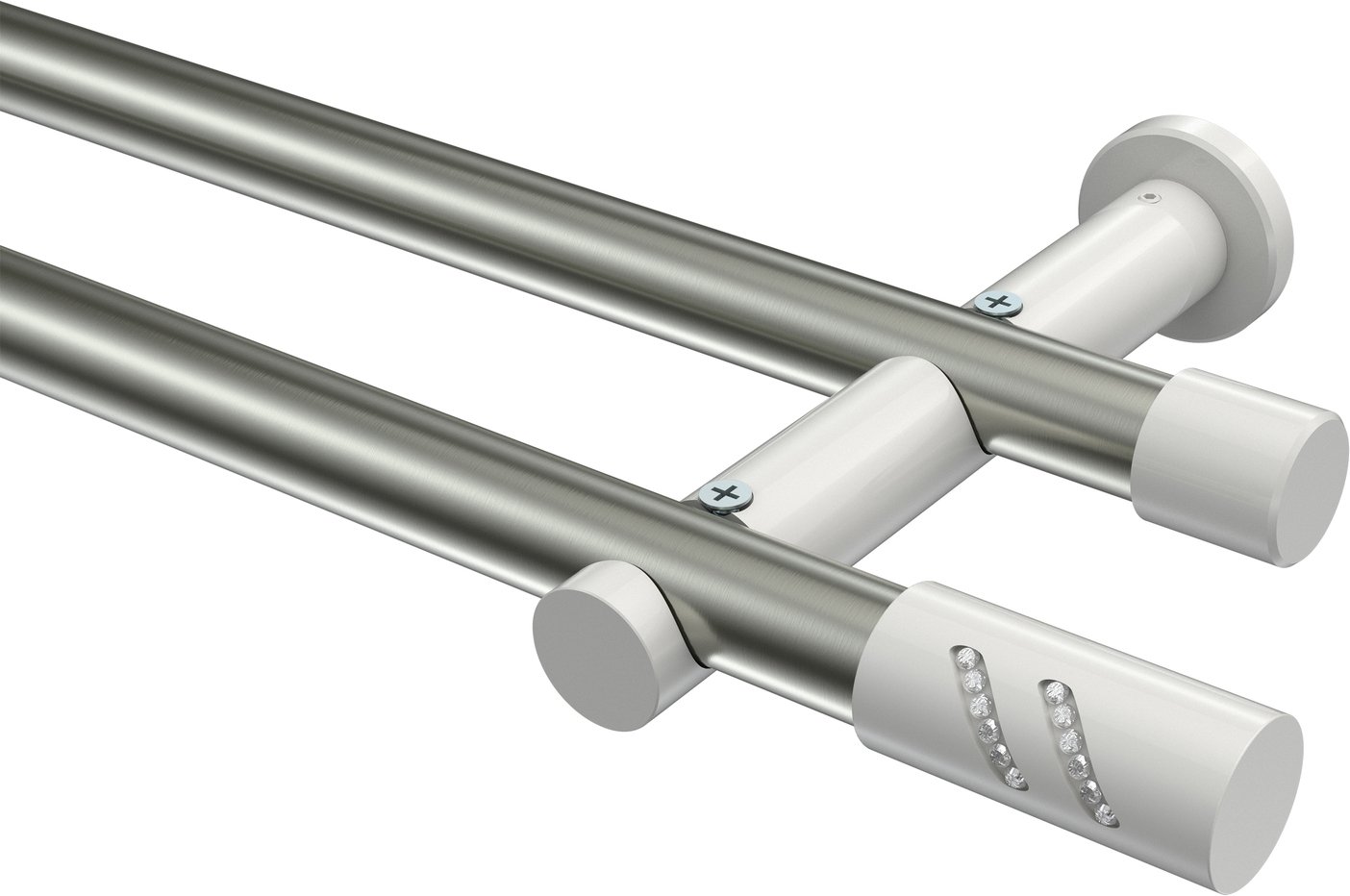 Gardinenstangen aus Metall in 20 mm Ø, 2-läufig, Modell PLATON - Zoena Edelstahl-Optik / Weiß (ohne Ringe)