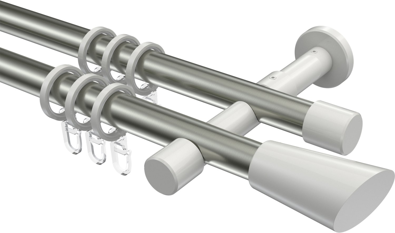 Informationen zu Gardinenstange Metall 20 mm Ø 2-läufig PRESTIGE - Bento Edelstahl-Optik / Weiß: