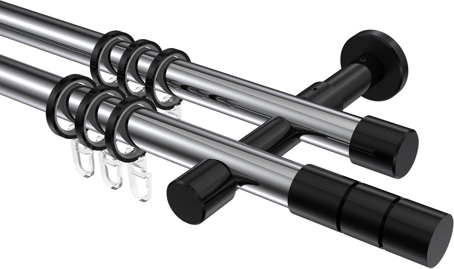 Gardinenstangen aus Metall in 20 mm Ø, 2-läufig, Modell PRESTIGE - Elanto Chrom / Schwarz