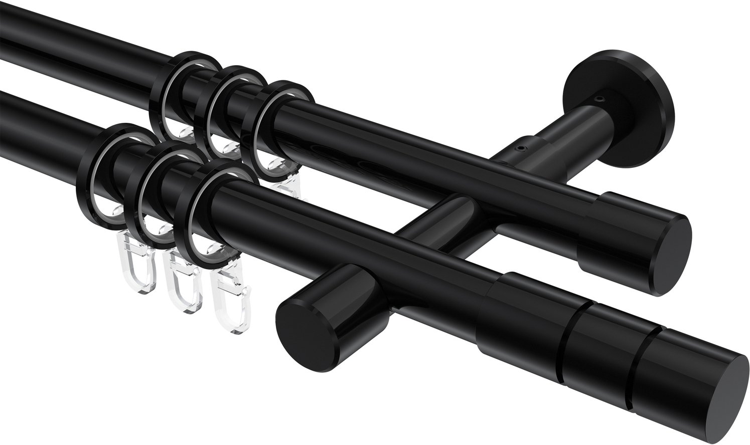 Gardinenstangen aus Metall in 20 mm Ø, 2-läufig, Modell PRESTIGE - Elanto Schwarz