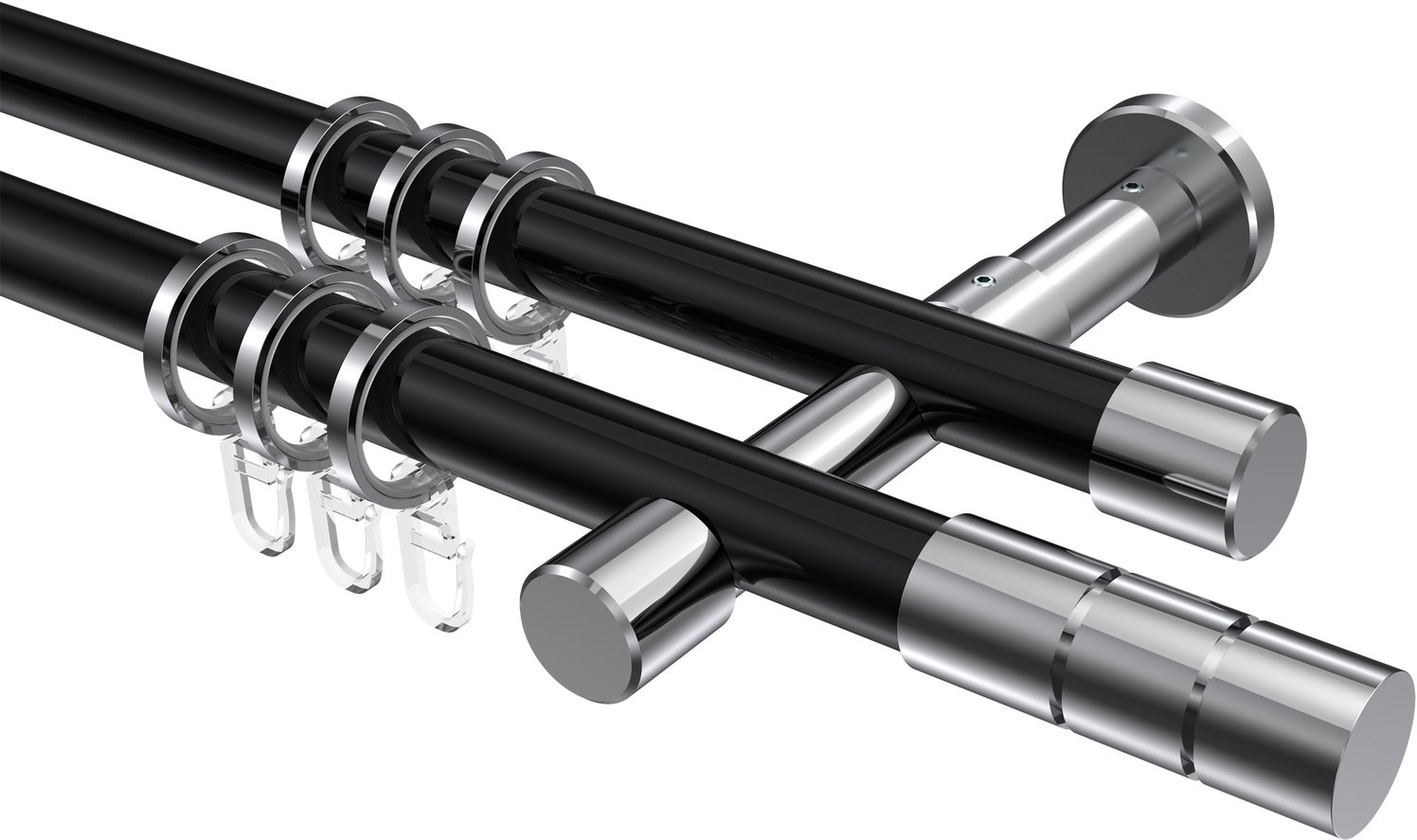 Gardinenstangen aus Metall in 20 mm Ø, 2-läufig, Modell PRESTIGE - Elanto Schwarz / Chrom
