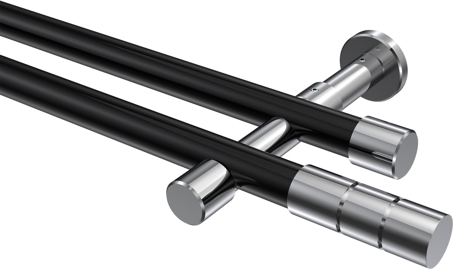 Informationen zu Gardinenstange Metall 20 mm Ø 2-läufig PRESTIGE - Elanto Schwarz / Chrom (ohne Ringe):