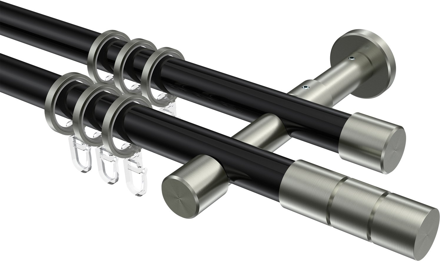 Informationen zu Gardinenstange Metall 20 mm Ø 2-läufig PRESTIGE - Elanto Schwarz / Edelstahl-Optik: