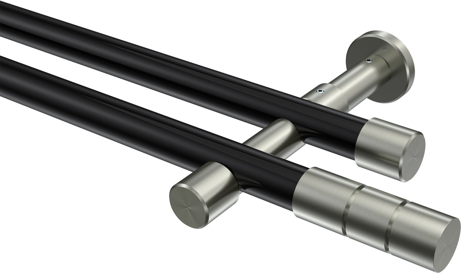 Informationen zu Gardinenstange Metall 20 mm Ø 2-läufig PRESTIGE - Elanto Schwarz / Edelstahl-Optik (ohne Ringe):