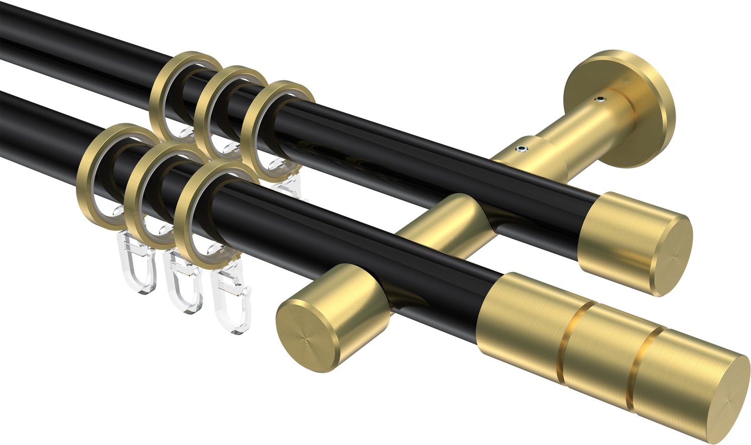 Informationen zu Gardinenstange Metall 20 mm Ø 2-läufig PRESTIGE - Elanto Schwarz / Messing-Optik: