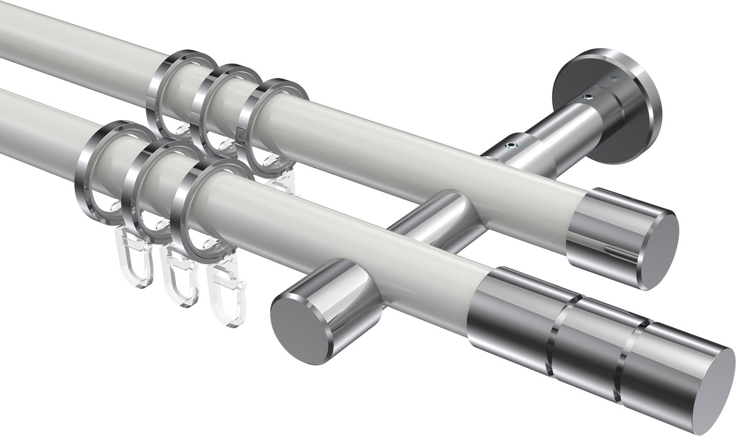 Gardinenstangen aus Metall in 20 mm Ø, 2-läufig, Modell PRESTIGE - Elanto Weiß / Chrom