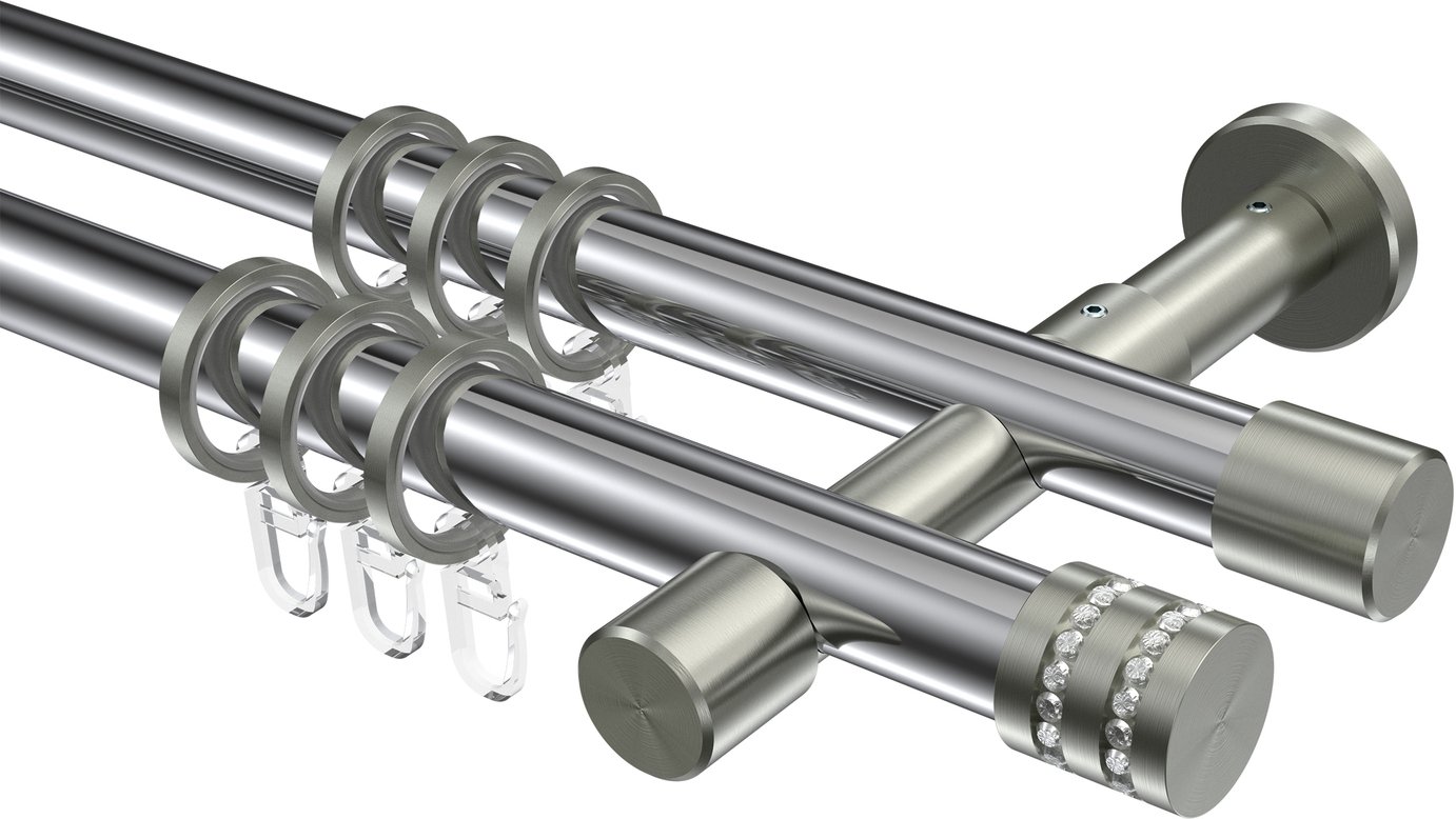 Gardinenstangen aus Metall in 20 mm Ø, 2-läufig, Modell PRESTIGE - Estana Chrom / Edelstahl-Optik