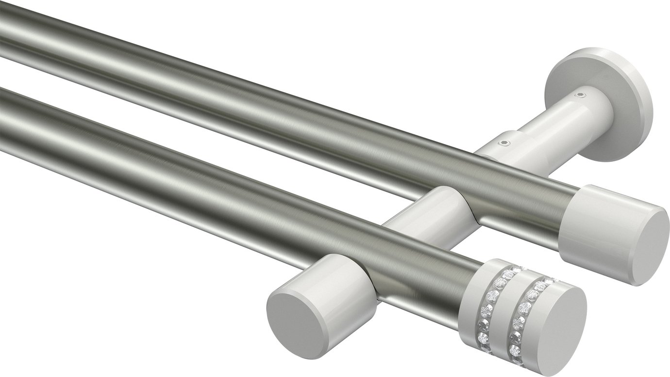 Informationen zu Gardinenstange Metall 20 mm Ø 2-läufig PRESTIGE - Estana Edelstahl-Optik / Weiß (ohne Ringe):