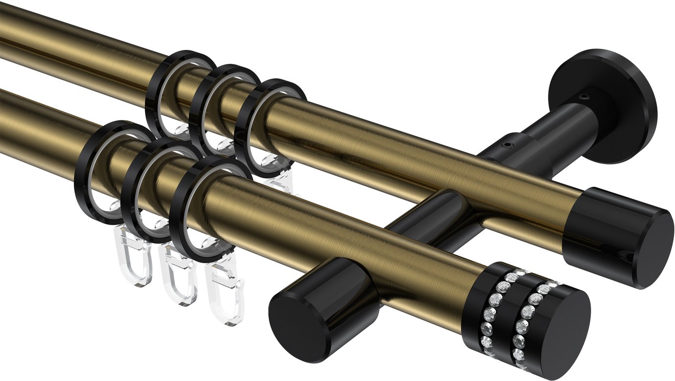 Informationen zu Gardinenstange Metall 20 mm Ø 2-läufig PRESTIGE - Estana Messing Antik / Schwarz: