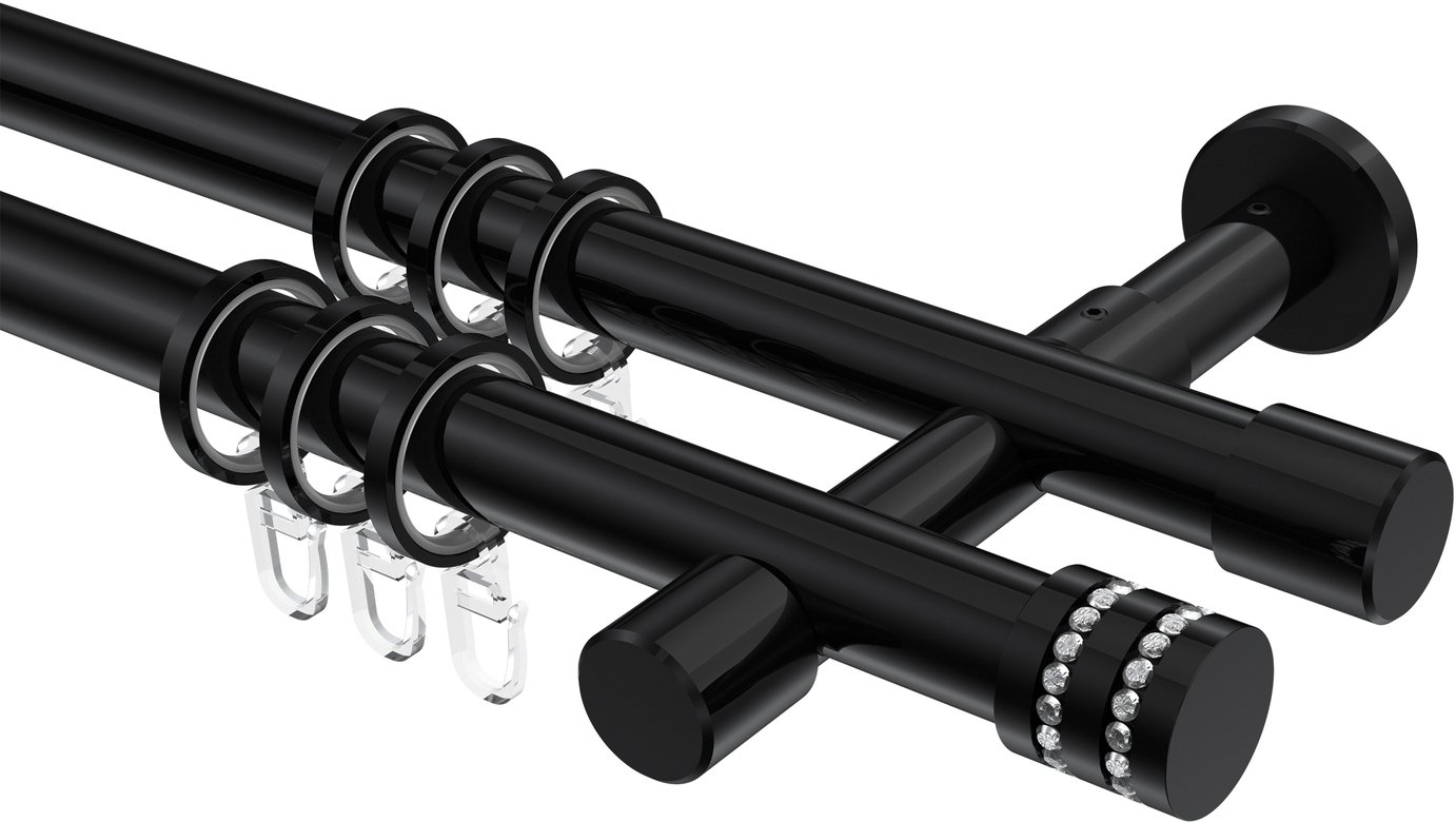 Gardinenstangen aus Metall in 20 mm Ø, 2-läufig, Modell PRESTIGE - Estana Schwarz