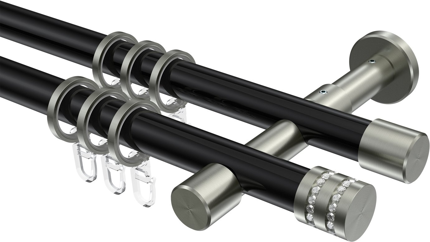 Gardinenstangen aus Metall in 20 mm Ø, 2-läufig, Modell PRESTIGE - Estana Schwarz / Edelstahl-Optik