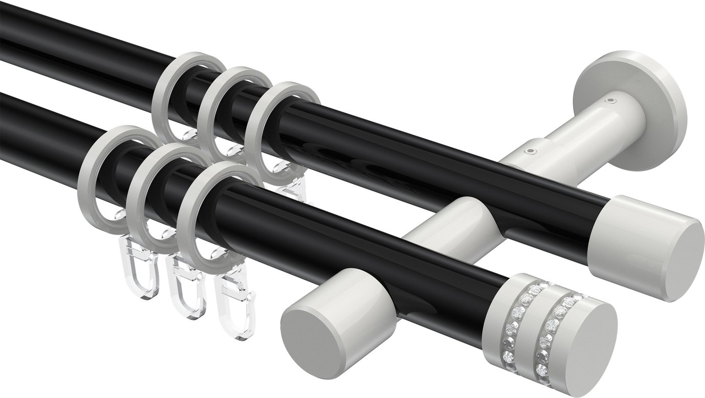 Gardinenstangen aus Metall in 20 mm Ø, 2-läufig, Modell PRESTIGE - Estana Schwarz / Weiß
