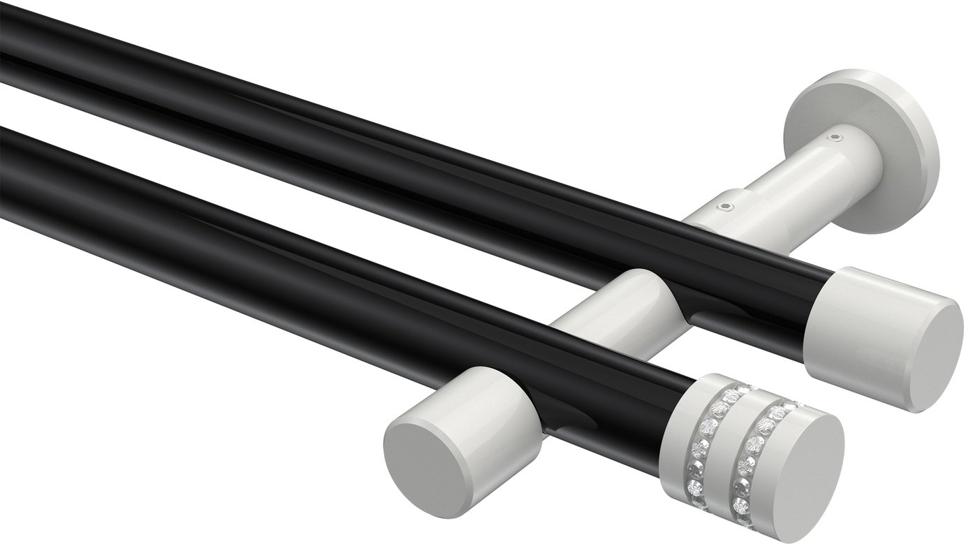 Informationen zu Gardinenstange Metall 20 mm Ø 2-läufig PRESTIGE - Estana Schwarz / Weiß (ohne Ringe):