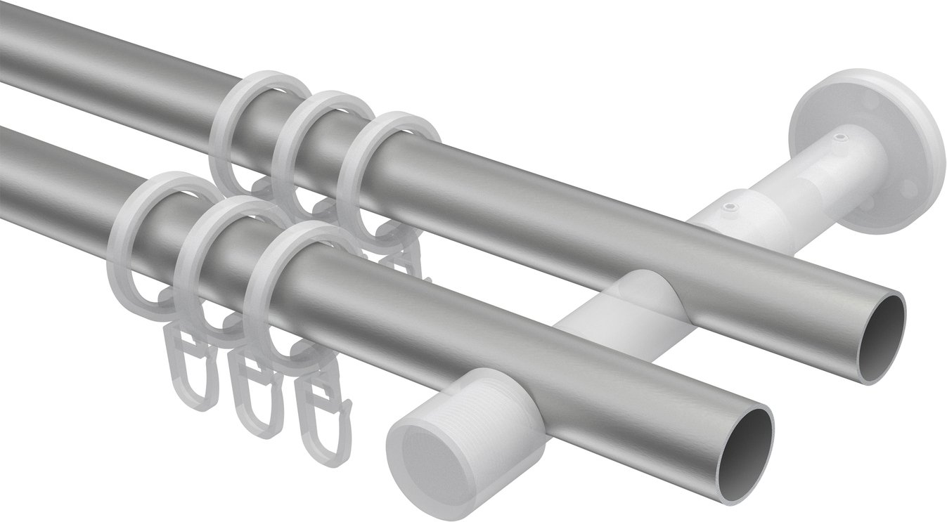 Informationen zu Gardinenstange Metall 20 mm Ø 2-läufig PRESTIGE - Estana Silbergrau / Schwarz: