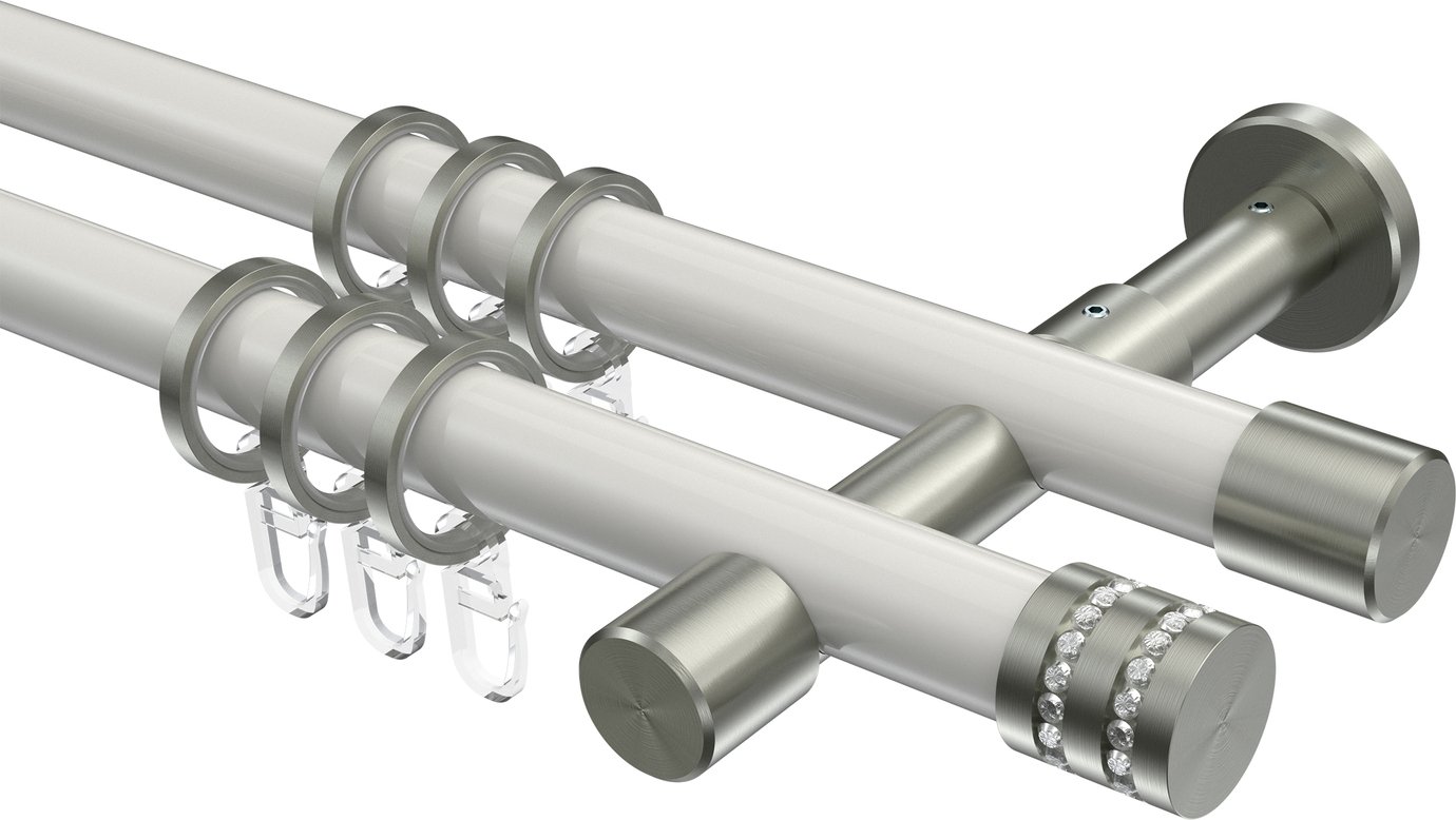 Gardinenstangen aus Metall in 20 mm Ø, 2-läufig, Modell PRESTIGE - Estana Weiß / Edelstahl-Optik