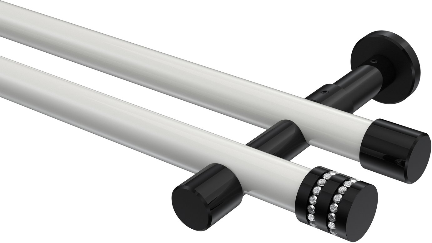 Gardinenstangen aus Metall in 20 mm Ø, 2-läufig, Modell PRESTIGE - Estana Weiß / Schwarz (ohne Ringe)