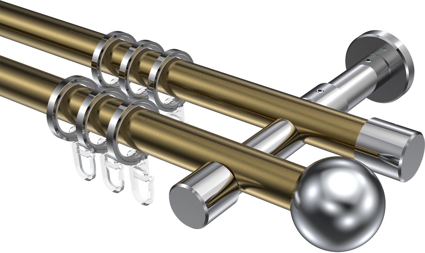 Gardinenstangen aus Metall in 20 mm Ø, 2-läufig, Modell PRESTIGE - Luino Messing Antik / Chrom