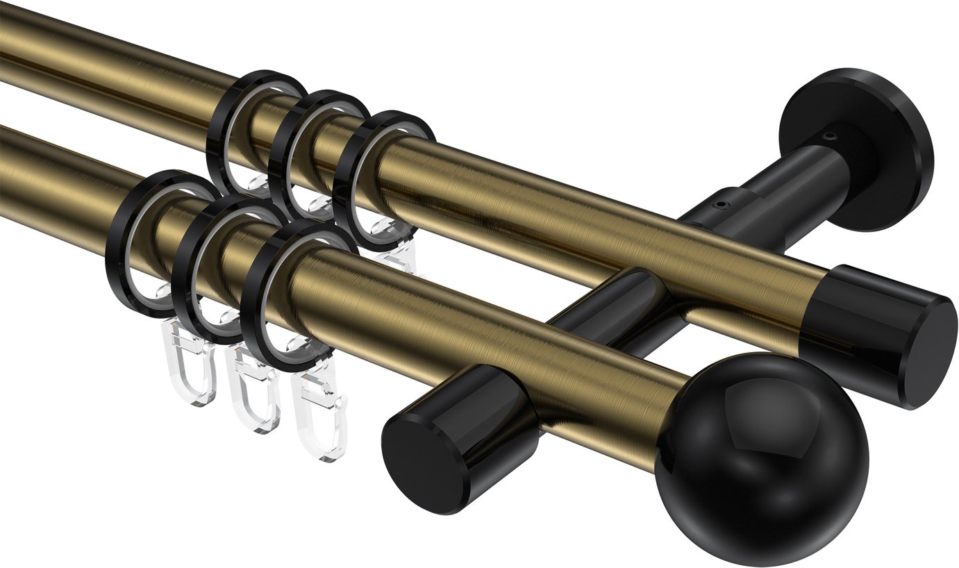 Gardinenstangen aus Metall in 20 mm Ø, 2-läufig, Modell PRESTIGE - Luino Messing Antik / Schwarz