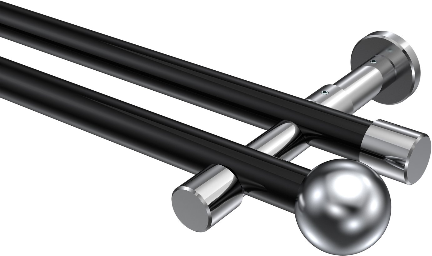 Informationen zu Gardinenstange Metall 20 mm Ø 2-läufig PRESTIGE - Luino Schwarz / Chrom (ohne Ringe):