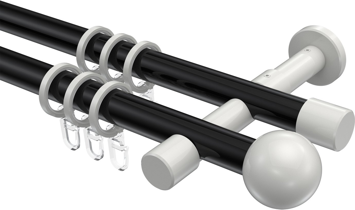 Informationen zu Gardinenstange Metall 20 mm Ø 2-läufig PRESTIGE - Luino Schwarz / Weiß: