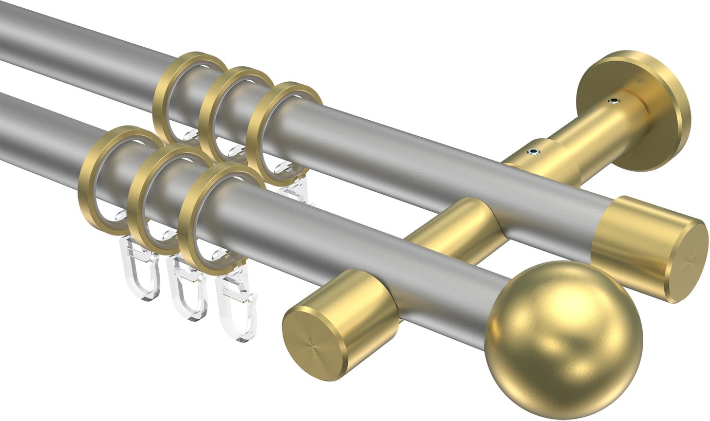 Gardinenstangen aus Metall in 20 mm Ø, 2-läufig, Modell PRESTIGE - Luino Silbergrau / Messing-Optik