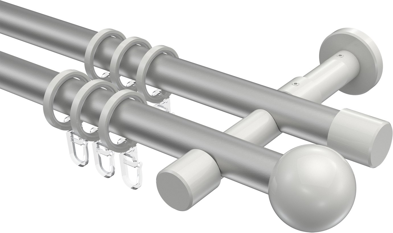 Gardinenstangen aus Metall in 20 mm Ø, 2-läufig, Modell PRESTIGE - Luino Silbergrau / Weiß