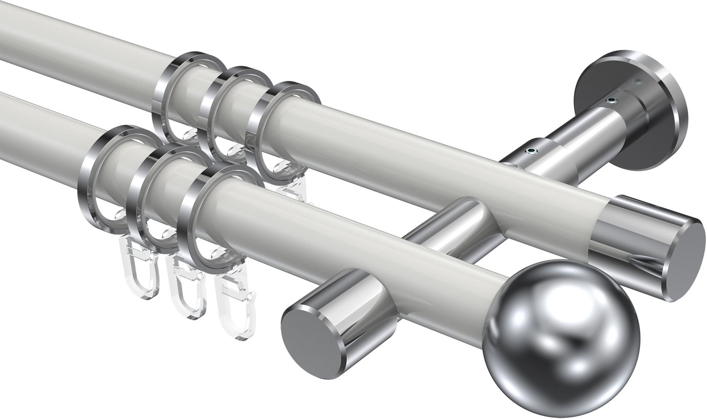 Gardinenstangen aus Metall in 20 mm Ø, 2-läufig, Modell PRESTIGE - Luino Weiß / Chrom