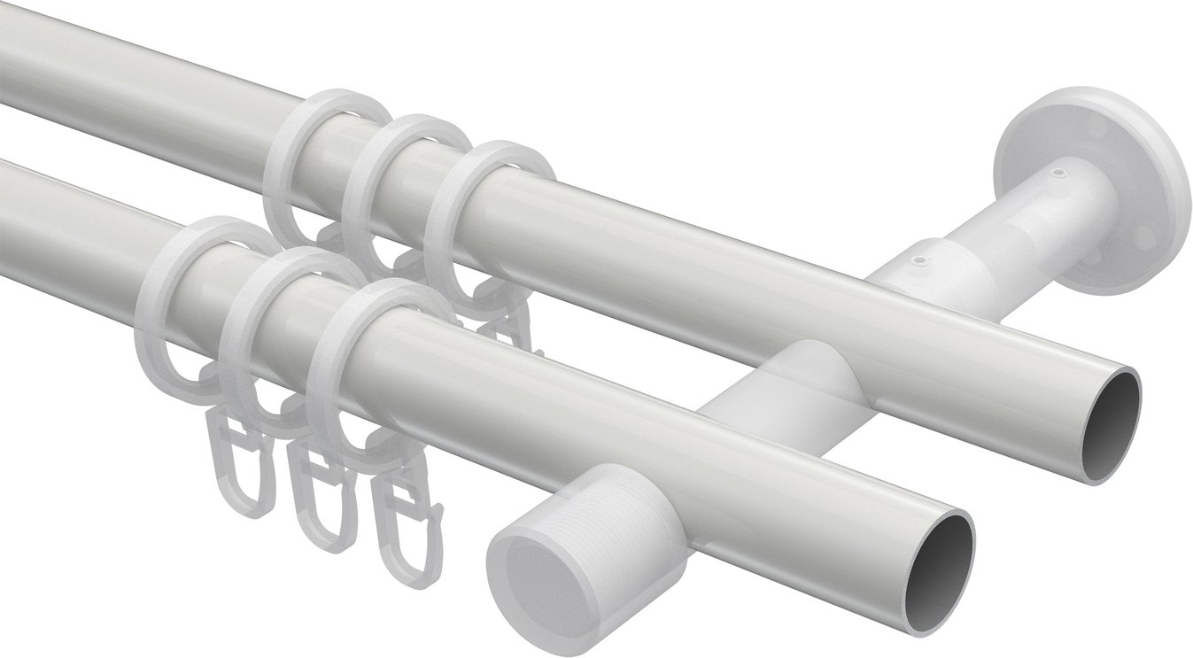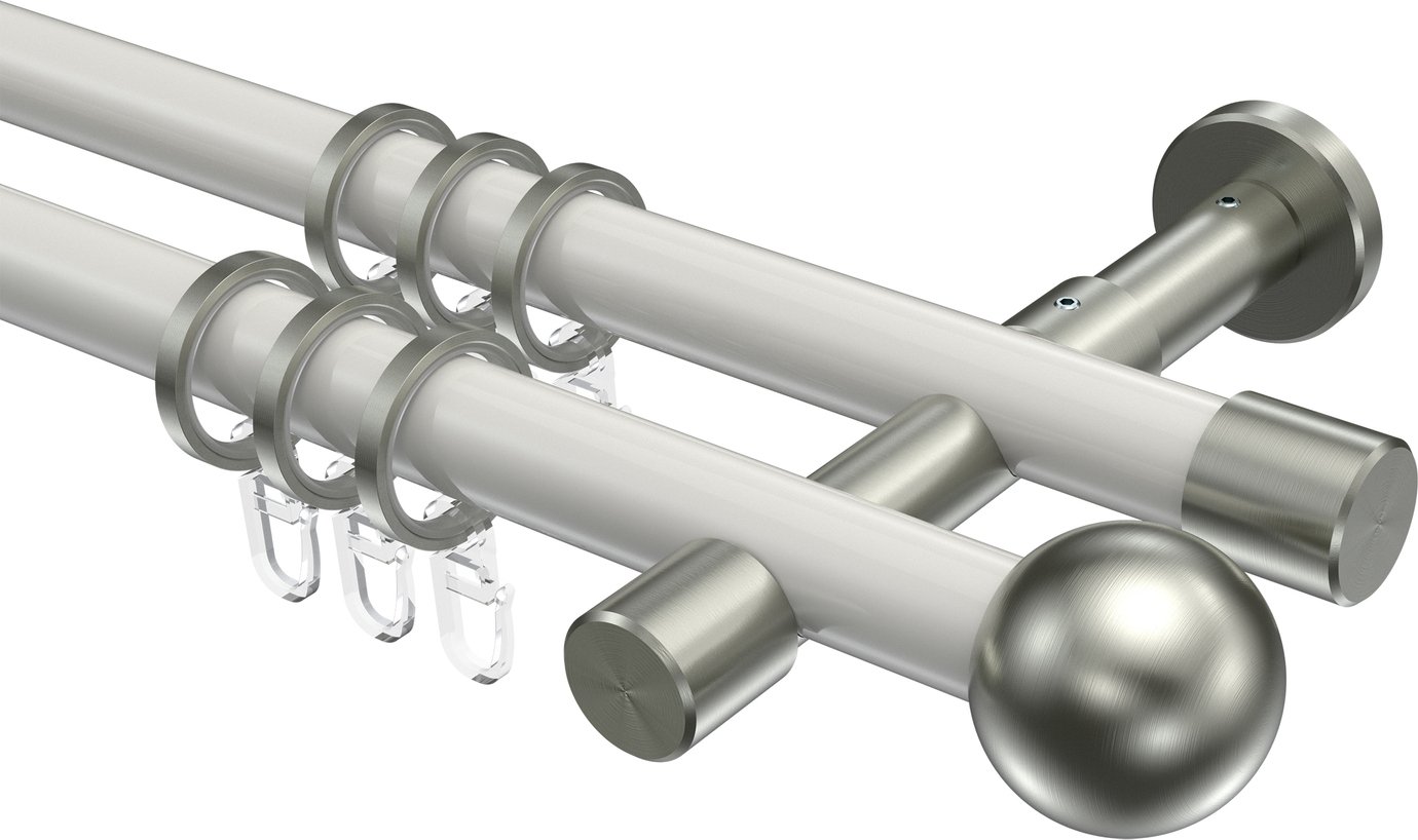 Gardinenstangen aus Metall in 20 mm Ø, 2-läufig, Modell PRESTIGE - Luino Weiß / Edelstahl-Optik