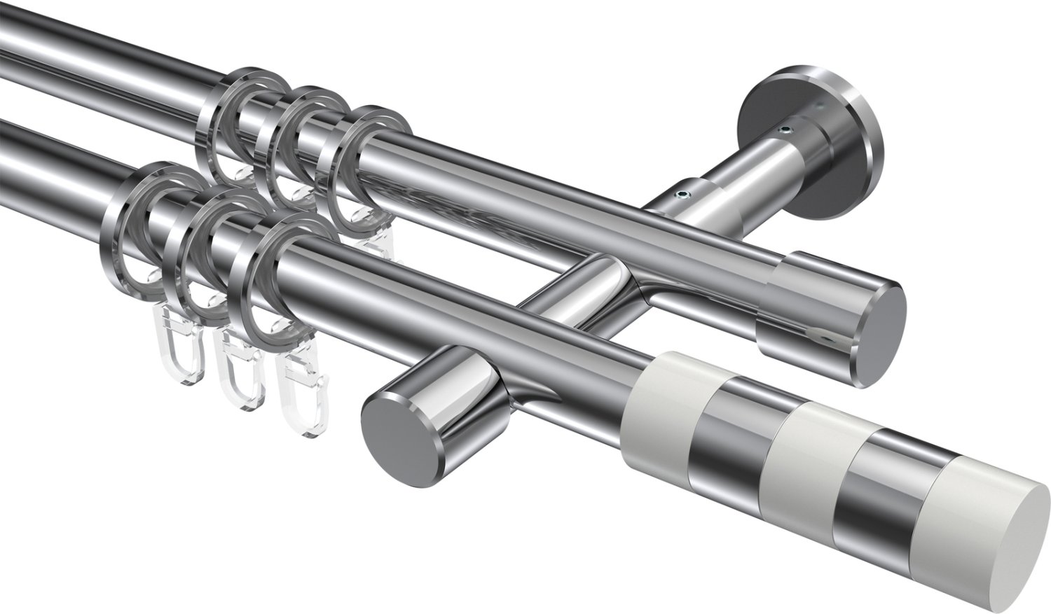 Gardinenstangen aus Metall in 20 mm Ø, 2-läufig, Modell PRESTIGE - Mavell Chrom
