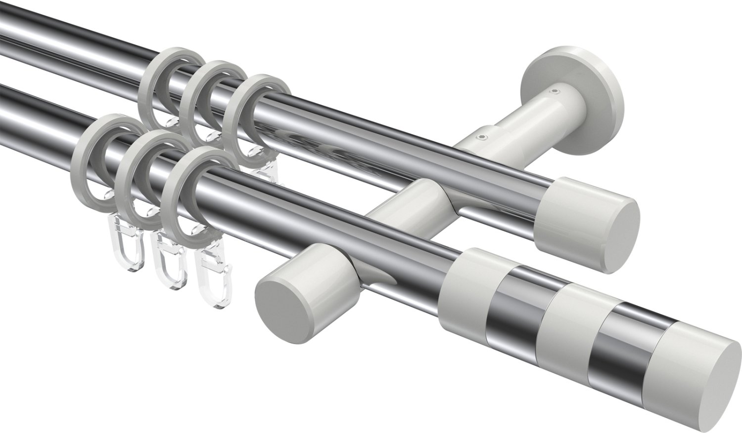 Gardinenstangen aus Metall in 20 mm Ø, 2-läufig, Modell PRESTIGE - Mavell Chrom / Weiß